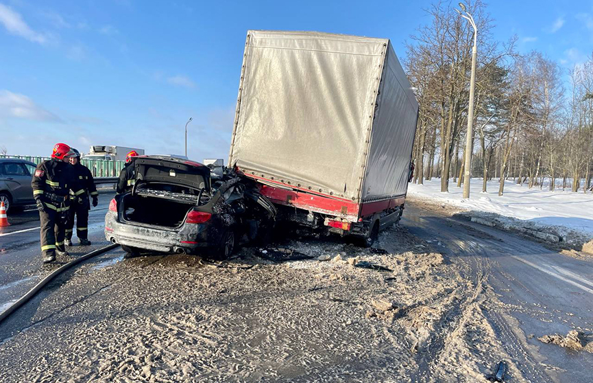 По предварительной информации, 23-летний водитель BMW, двигаясь по Смиловичскому тракту, не справился с управлением, в результате чего совершил наезд на грузовой автомобиль Mercedes, который стоял в первой полосе