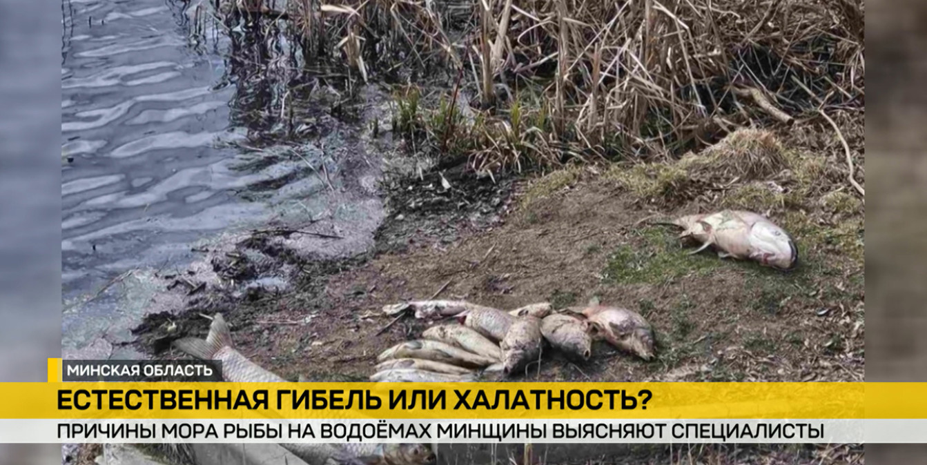 Александр Добрицкий, заместитель председателя Минского областного комитета природных ресурсов и охраны окружающей среды: «Установлен действительно факт мора рыбы в количестве 106 особей. Предварительная причина: это стоки от агрокомбината. Ранее был отобран кислород в этом водоеме, он был в соответствии с нормой. То есть именно рыба не задохнулась от недостатка кислорода после выхода из-подо льда. Человеческая халатность я бы не сказал, иногда есть факты, что именно, может даже в результате каких-то аварийных ситуаций у нас именно стоки попадают и загрязняют реки. Непреднамеренно, конечно. Это произошло в техническом водоеме. Подсчитываем факт причинения вреда окружающей среде. Предварительно, он составил, приблизительно 18 тысяч рублей».