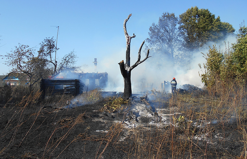 Под Могилевом из-за пожара сухой травы пенсионер остался без крыши над головой