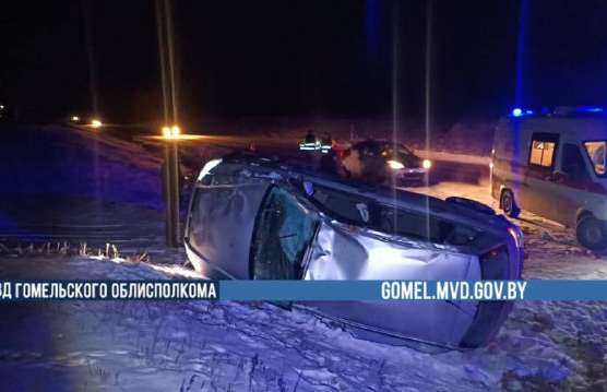 Под Жлобином легковушка съехала в кювет и опрокинулась, пострадал пассажир