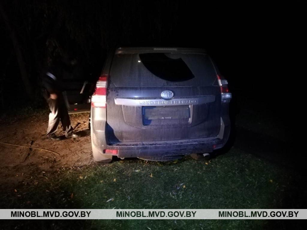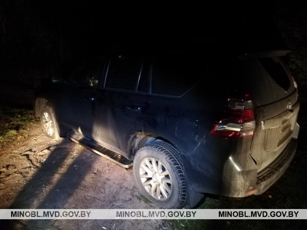 Сообщение о пьяном водителе, который совершил ДТП и пытался скрыться с места происшествия, поступило в милицию вечером 6 октября. Сотрудники милиции заметили на автодороге Молодечно-Сморгонь чёрный Toyota Land Cruiser на российских номерах.