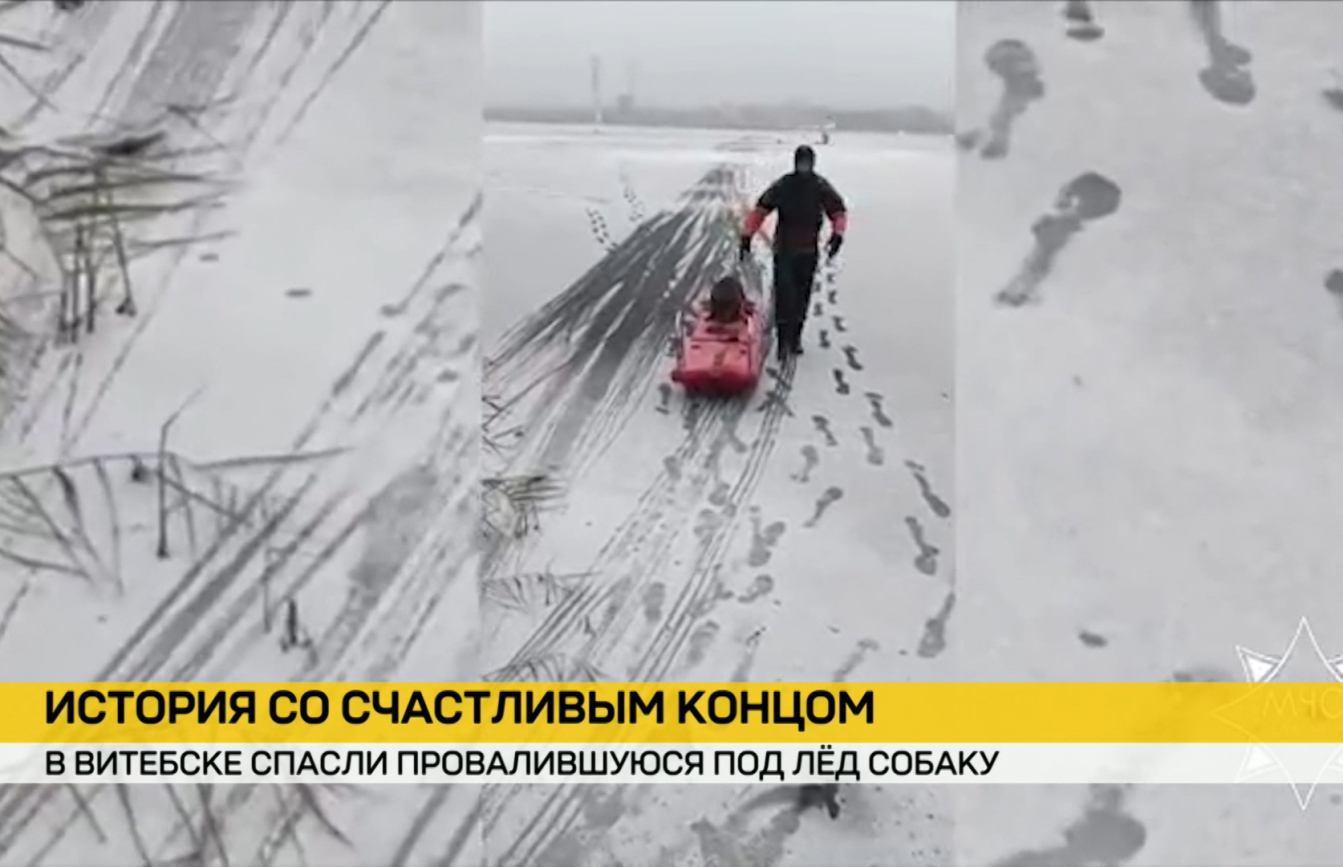 Работники МЧС спасли собаку, которая провалилась под лед в Витебске