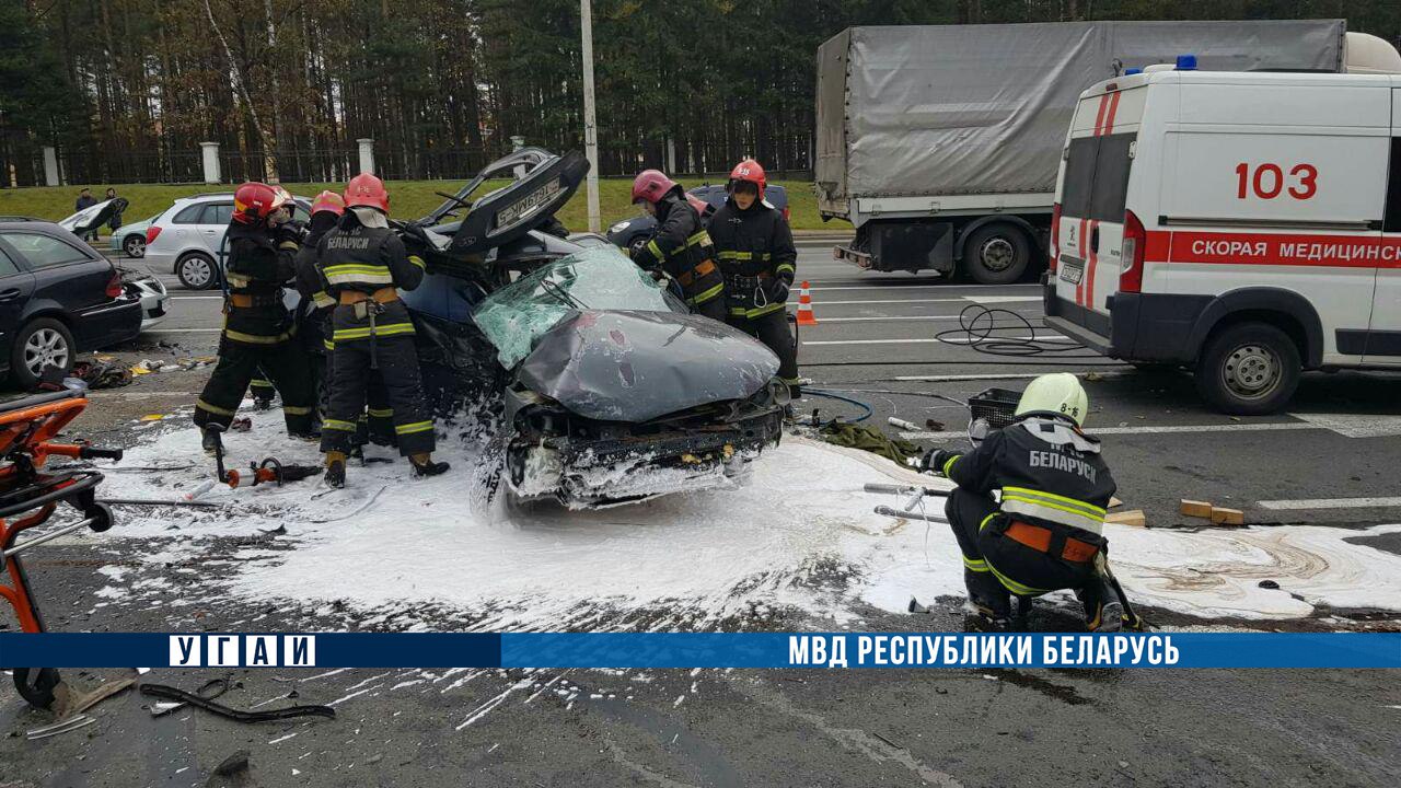 Серьезная авария произошла 7 октября около 10:45 на выезде из Минска. В результате столкновения автомобилей Mazda, Ford и Mercedes погиб один человек, еще трое пострадали, сообщили в МВД.