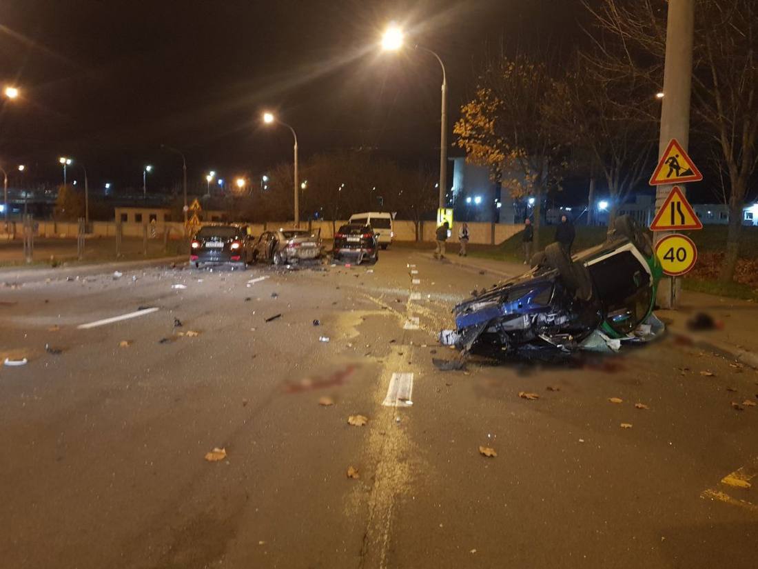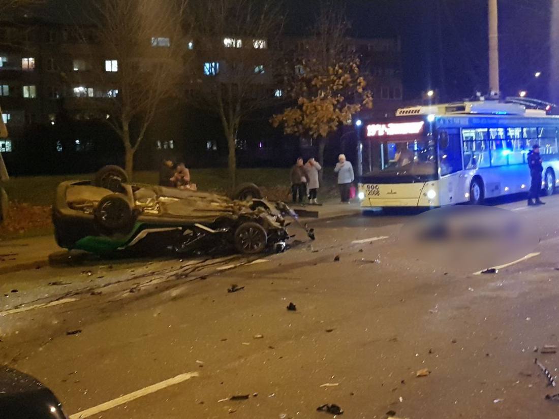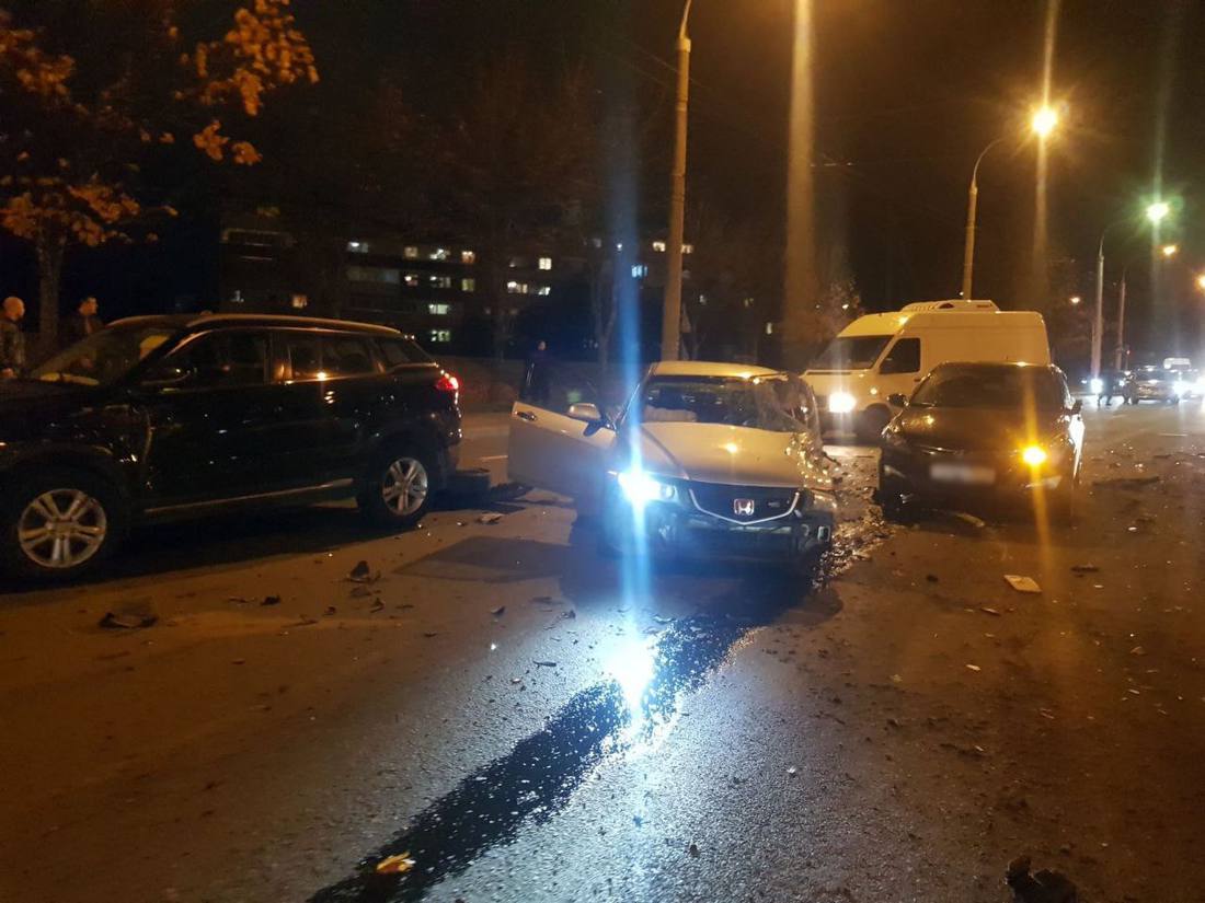 ДТП произошло 19 октября примерно в девять вечера. 22-летний водитель на каршеринговом автомобиле Volkswagen ехал по улице Вирской со стороны улицы Казинца в направлении улицы Брилевской. Не справившись с управлением, въехал в металлическое ограждение, затем выехал на встречку, где столкнулся с Honda, Hyundai, Geely и Mercedes, а затем опрокинулся. Водитель и пассажир каршеринга, водитель и пассажир Honda находятся в больнице.