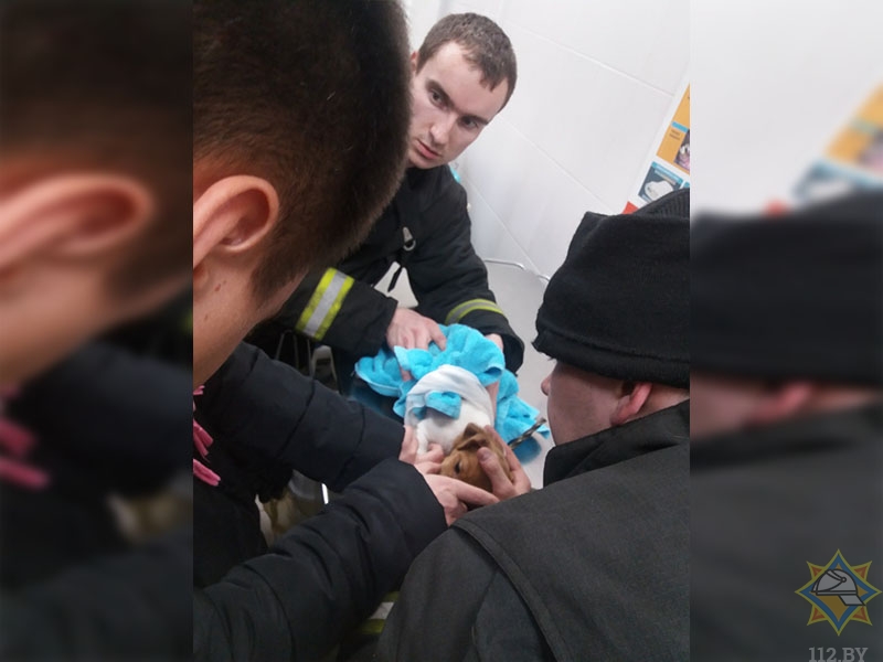 Столичные спасатели помогли двухмесячному щенку: лапа крохи застряла в металлической вешалке