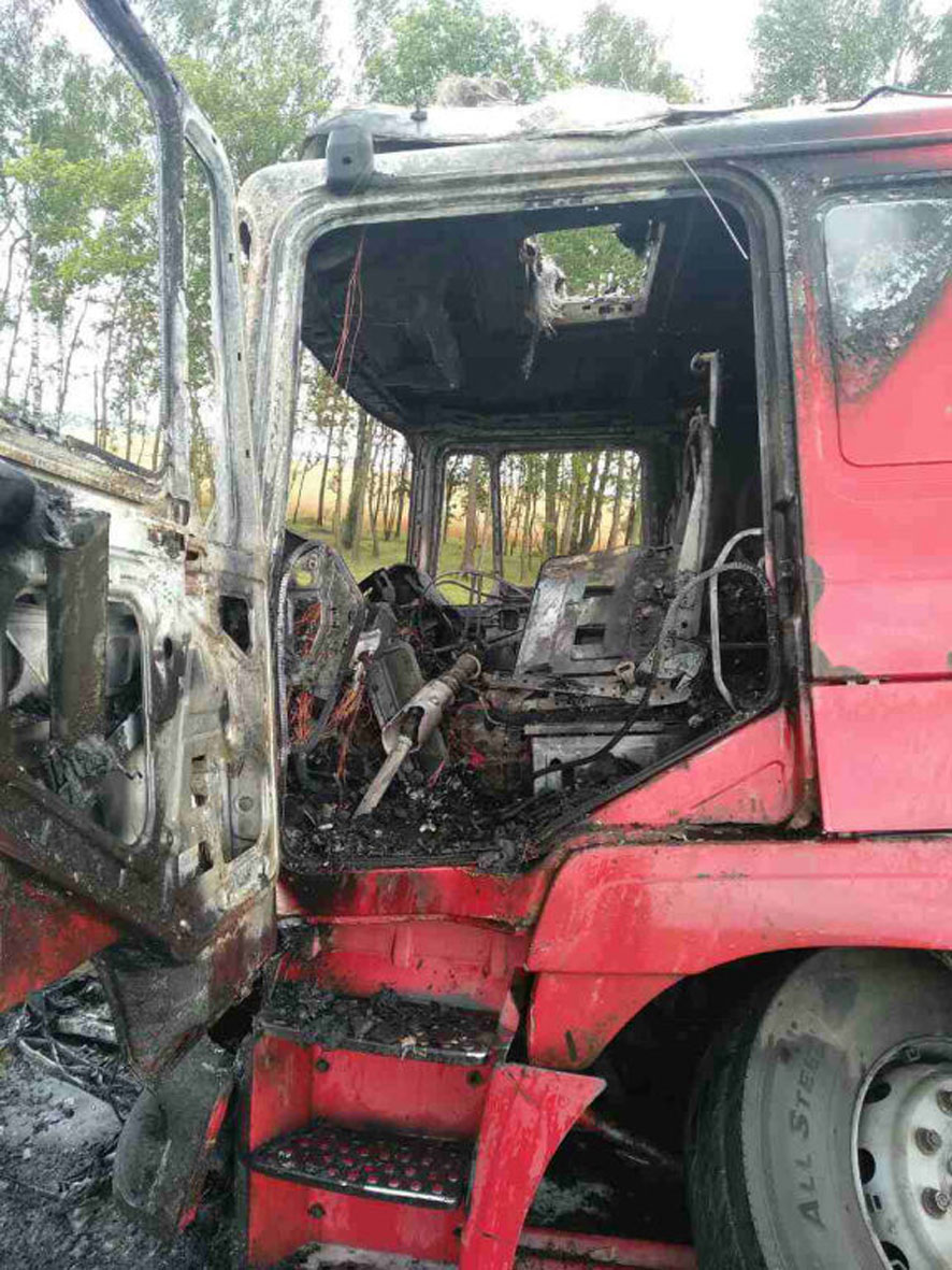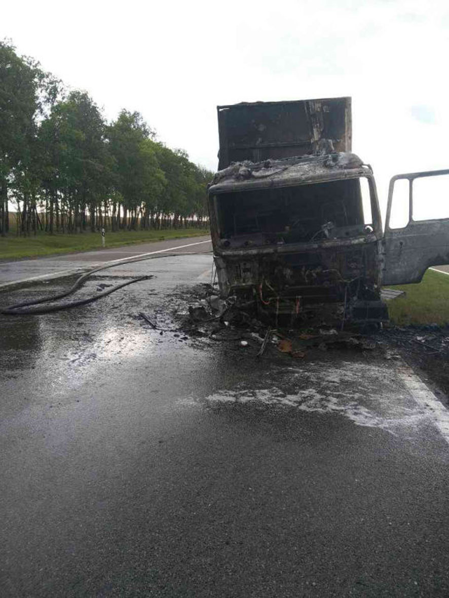 Трагедия произошла в Червенском районе. На 39-м км автодороги Минск-Могилёв около 17:15 Ford Focus выехал на встречку и столкнулся с грузовиком MAN, фура моментом загорелась.