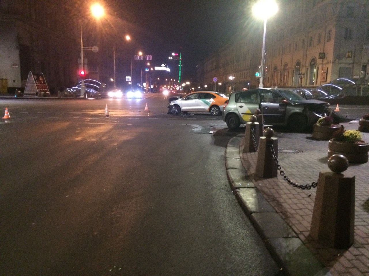 Авария произошла ночью 4 октября примерно в 00:30 на перекрёстке пр. Независимости и ул. Ленина. 24-летний водитель каршерингового автомобиля марки Volkswagen двигался по ул. Ленина по направлению к ул. К. Маркса. На перекрёстке он столкнулся с такси Renault. Последним управлял мужчина 1972 года рождения.