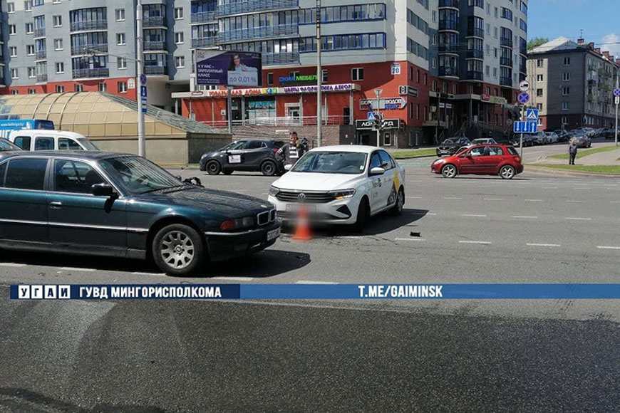 В Минске около 13:15 автомобиль Volkswagen (Яндекс.Такси) столкнулся с мотоциклом Honda. Об этом сообщает Telegram-канал УГАИ ГУВД Мингорисполкома.