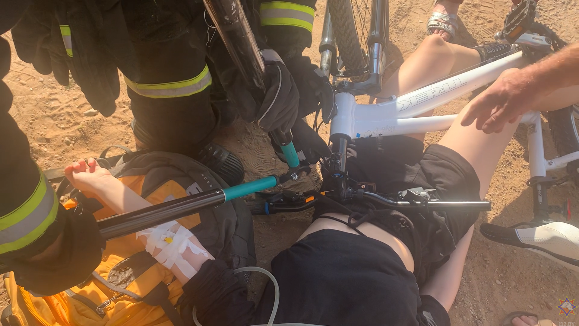 «Когда мы прибыли на место, на пешеходной дорожке на углу дома лежала девочка. При визуальном осмотре было обнаружено, что у ребенка в правом бедре застряла тормозная ручка от велосипеда. На месте уже была бригада скорой помощи, но без нас они не могли госпитализировать девочку», – рассказал начальник дежурной смены ПАСЧ№2 Новополоцкого городского отдела по чрезвычайным ситуациям Виктор Тарасов.