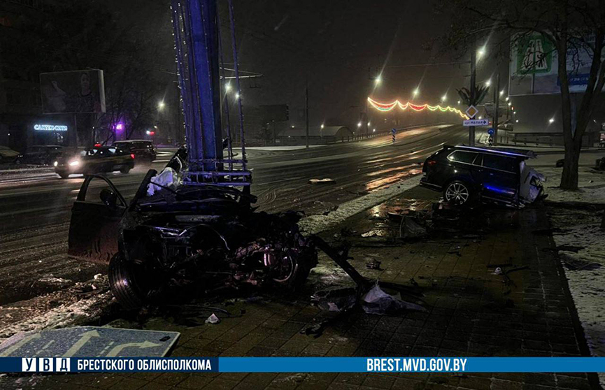 В Бресте молодой парень на Volkswagen врезался в столб – машина на две части, водитель погиб
