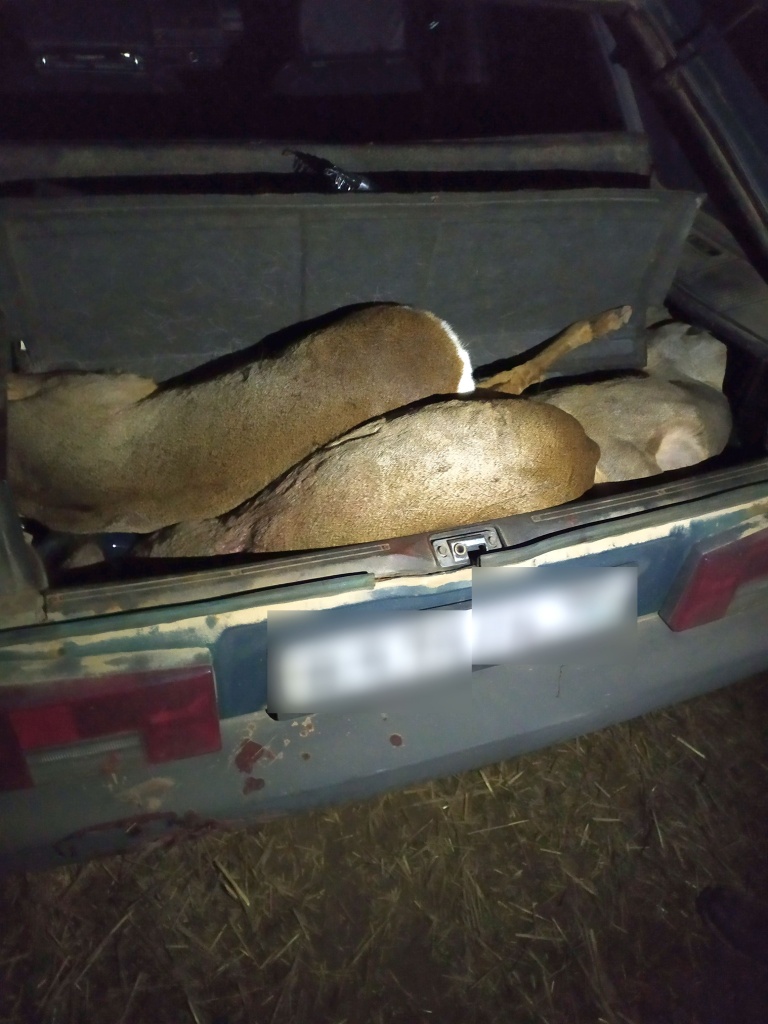 Браконьеры попытались скрыться на авто, однако на дороге их перехватили правоохранители. Мужчины бросились бежать, оставив машину с тремя косулями в багажнике.