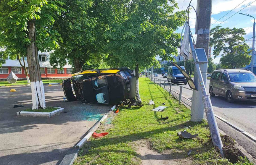 В Гомеле такси перевернулось после столкновения со светофором: пострадал пассажир