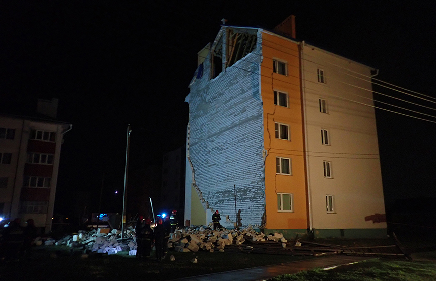 Как сообщили в региональном управлении МЧС по Гомельской области, вечером 2 апреля поступило сообщение об обрушении стены пятиэтажного жилого дома по ул. Мира в агрогородке Урицкое Гомельского района.