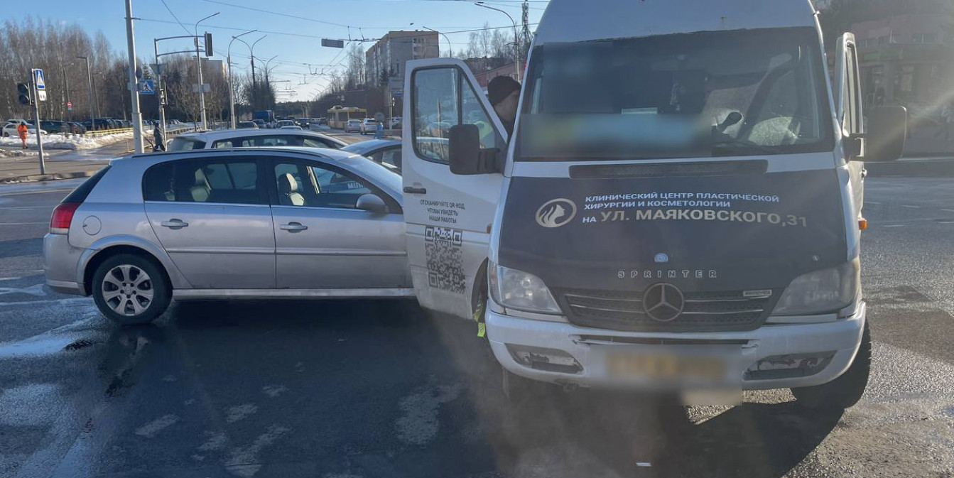 В Минске на перекрестке улиц Одинцова и Якубовского маршрутка попала в ДТП