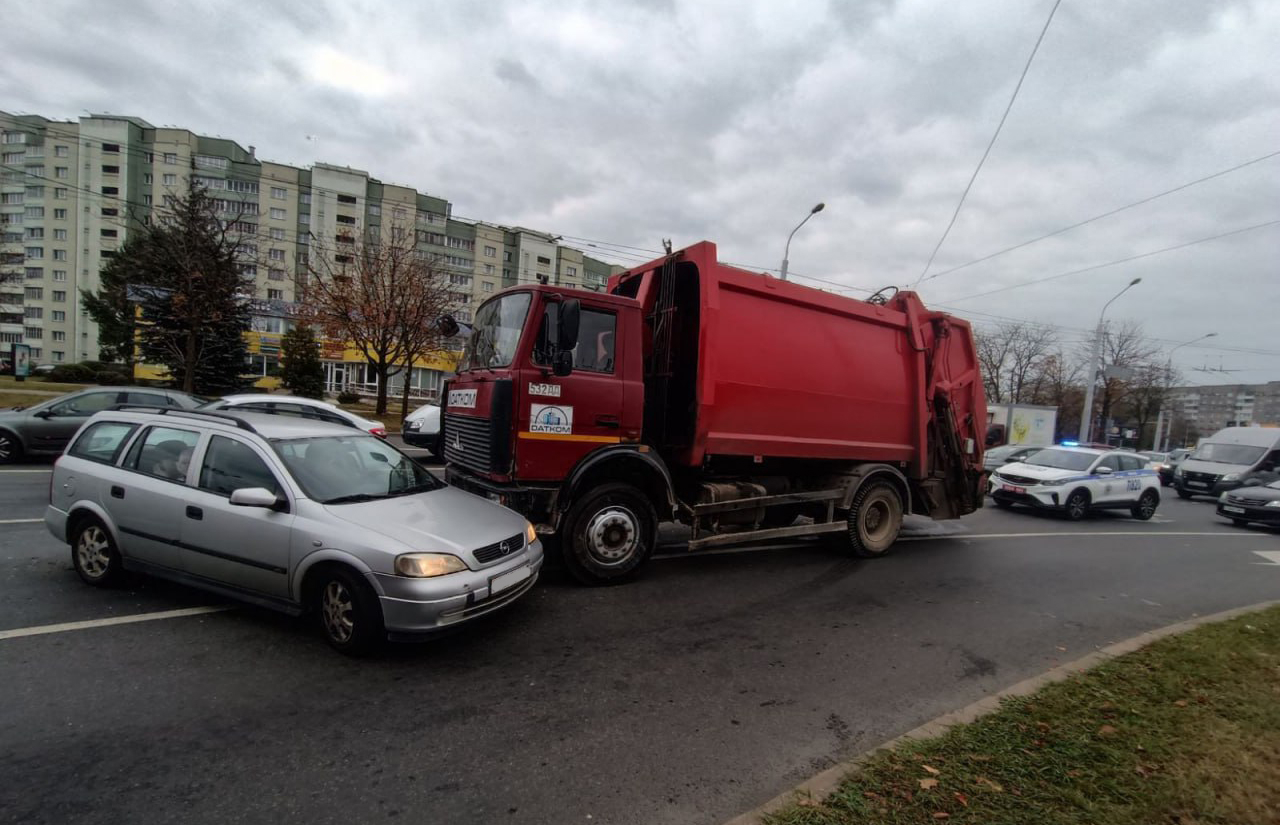 Авария случилась в Минске с участием автомобиля и мусоровоза. Об этом сообщили в ГАИ.