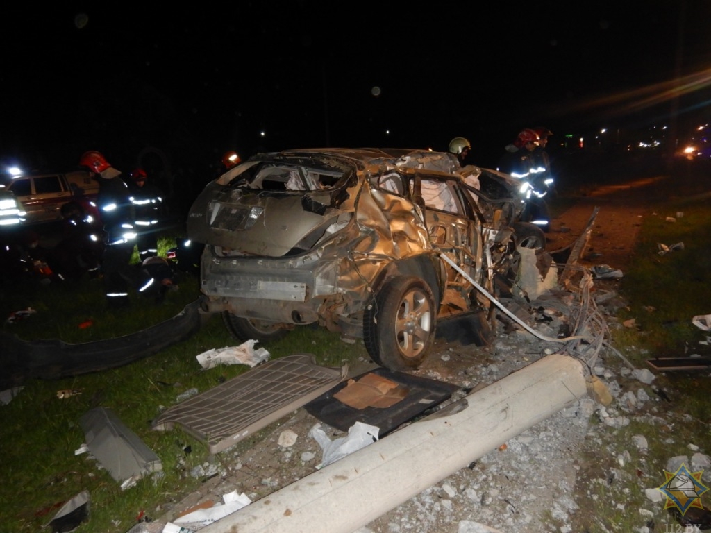 В 00.15 ночи 17 мая в ЦОУ Могилевского ГОЧС поступило сообщение о ДТП на ул. Славгородского шоссе. В осветительный столб врезался Nissan Murano с водителем и двумя пассажирами внутри.