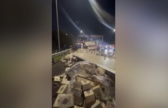 В России фура с грузинским вином попала в жесткое ДТП: упаковки разбросаны по всей дороге
