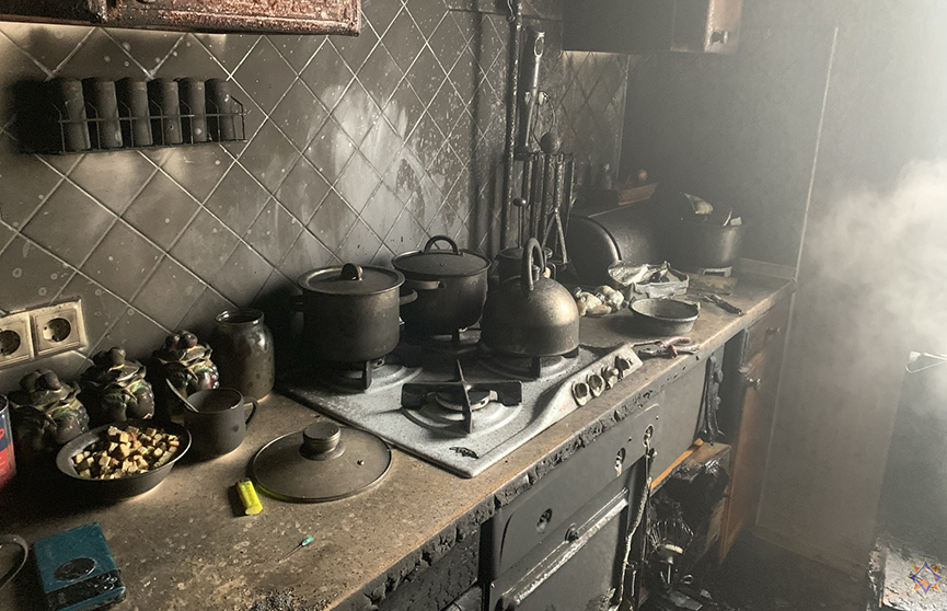 Пожар повредил мебель и имущество на кухне, в квартире закопчены стены и потолок.