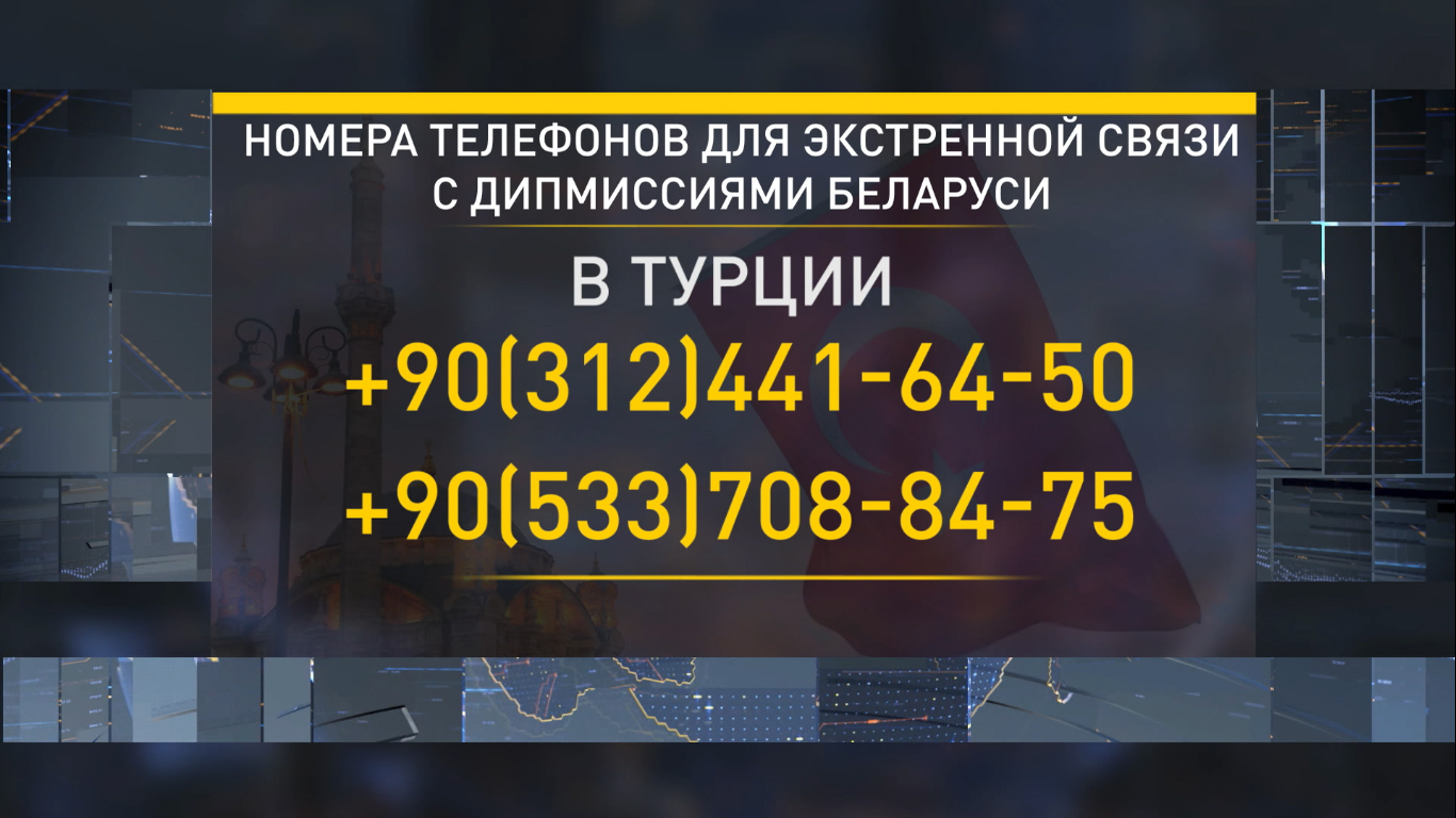 Посольства Беларуси в Турции и Сирии находятся на связи круглосуточно. За любой помощью наши граждане могут обращаться по этим номерам телефонов. Там же можно поинтересоваться судьбой своих родных.
