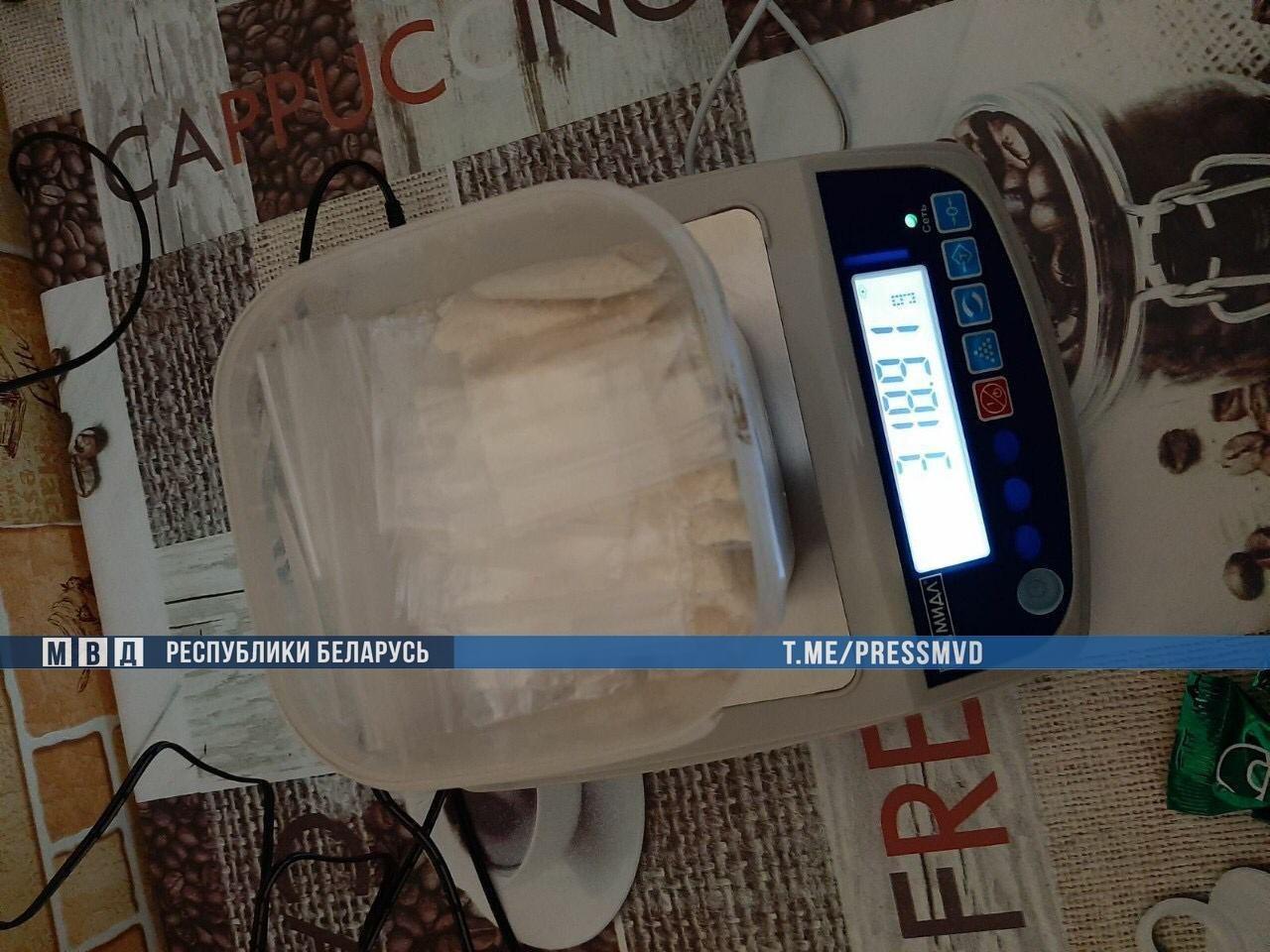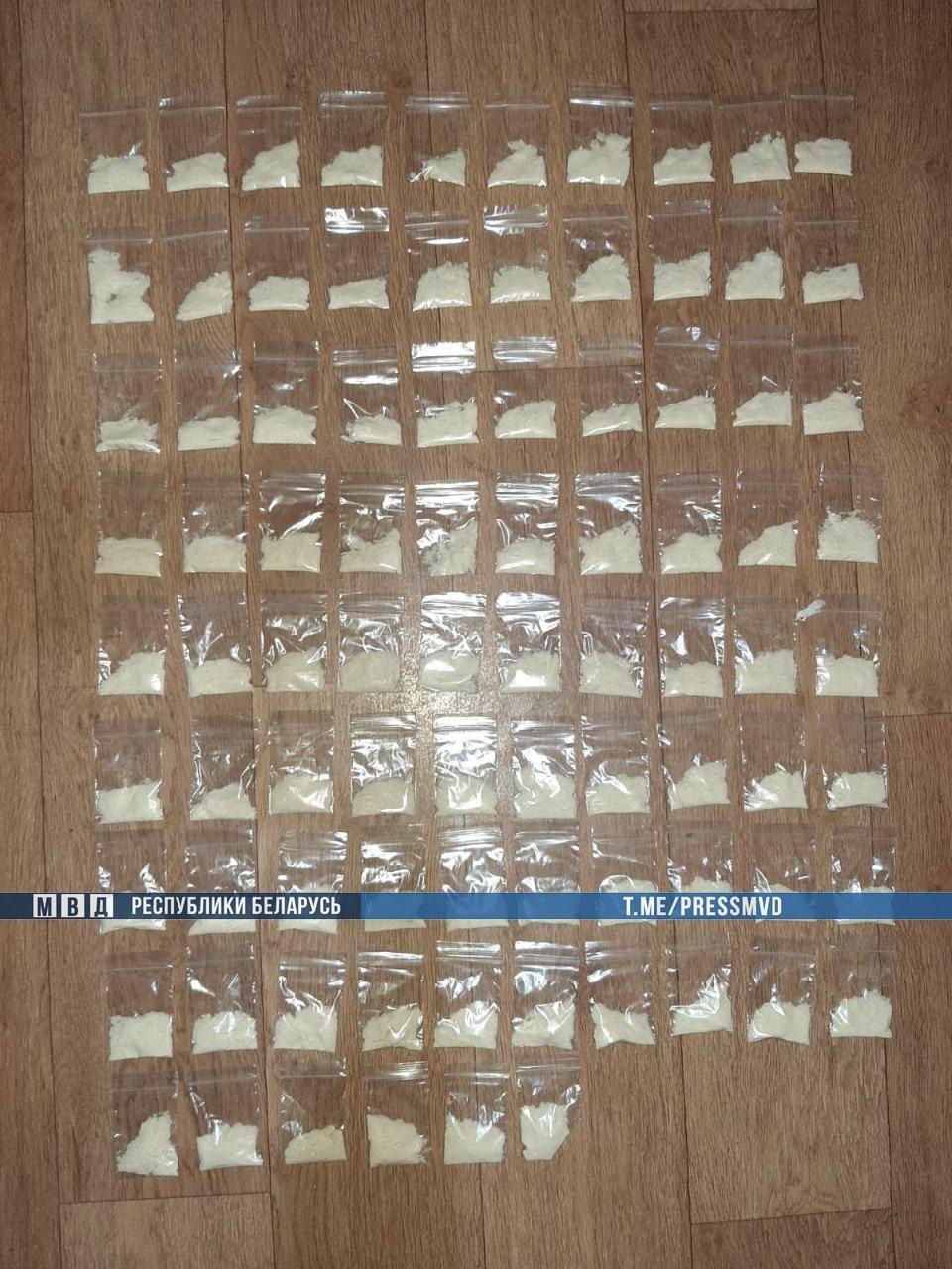 Работники ГАИ, заметив, как парень делает закладку, взяли его с поличным. У него нашли почти 100 грамм особо опасного психотропного вещества параметилэфедрона в машине, за рулем которой сидела бывшая жена подозреваемого. Когда оперативники осмотрели Первомайский район Минска, а также прилегающую территорию, было обнаружено еще 50 граммов наркотика.