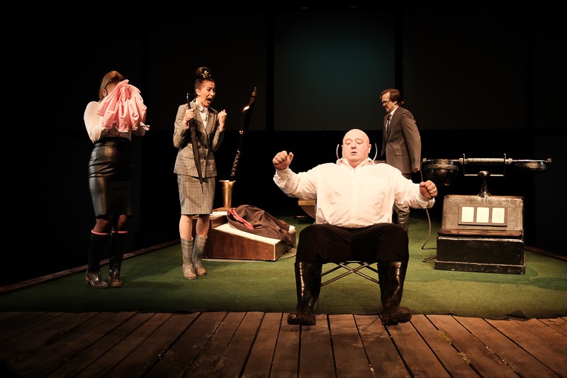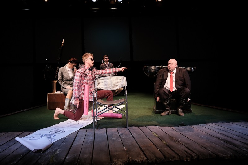 Сатира, драма, комедия, – все эти жанры сочетаются в одном спектакле. Итак, гаснет свет и только один прожектор освещает сцену, на которой зритель видит огромных размеров офисный телефон, пресс-папье, перекидной календарь и ручку Parker с человеческий рост. Это офис Министерства согласований. Гротеск начинается.