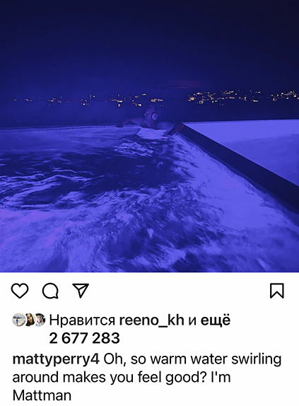 Бывшая девушка Мэттью Перри Кейти Эдвардс, с которой известный актер встречался в 2006 году, ставит под сомнения выводы врачей относительно причин его смерти. Она не верит, что он мог утонуть в джакузи, и считает, что звезда сериала «Друзья» мог погибнуть из-за употребления запрещенных веществ. Об этом информирует издание The Sun.