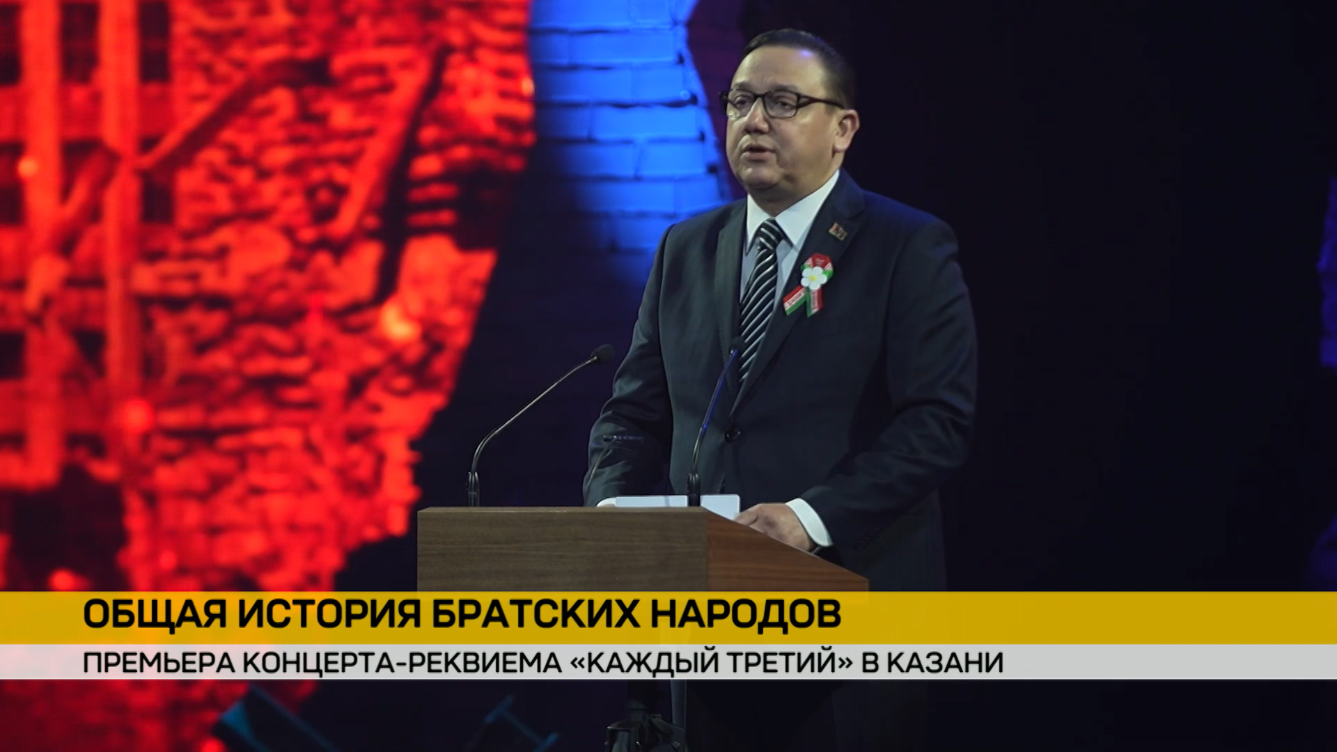 Показ в Казани – не случаен. В годы войны столица Татарстана стала вторым домом для десятков тысяч белорусов. Сюда эвакуированы Академия наук БССР, госорганы, заводы, деятели культуры. Поэтому проект здесь очень ждали. Александр Лукашенко направил обращение к участникам концерта-реквиема, отметив, что в его сюжете – боль потерь и беспримерный героизм, связавший народы советских республик нерушимыми братскими узами.