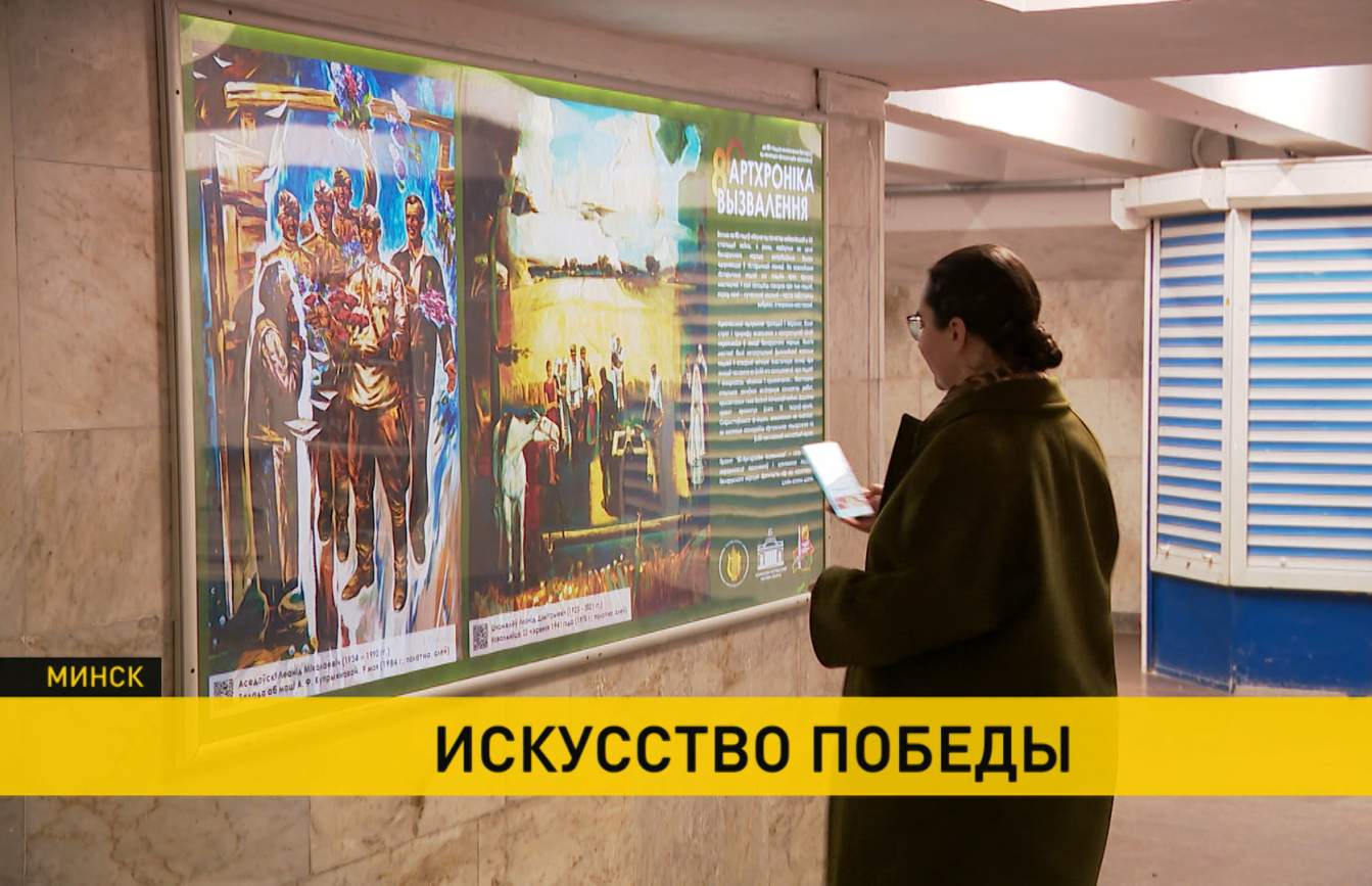 «Картины Победы» из Национального художественного сегодня «ушли в народ». В переходе к станции «Октябрьская» минского метро – первая серия проекта под грифом «80 – Артхроніка вызвалення». Это совместная инициатива Минкульта и музея, восставшего из пепла в 1944-м. В нестандартном пространстве – репродукции живописных и графических работ авторов-современников Великой Отечественной войны. Их оригинальные «измы» совсем рядом. Можно сравнить.