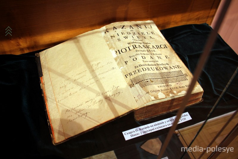Увидеть «Kazaniananiedziele y świętacałegoroku» известного иезуитского проповедника Петра Скарги можно будет до 6 октября в Музее Белорусского Полесья. К слову, сама книга была напечатана в типографии Коллегиума иезуитов, где сейчас находится музей.