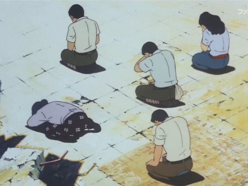 Но все же, если не брать в расчет эти обстоятельства и общую напряженность из-за происходящего, то все выглядит как произведение жанра «повседневность», демонстрирующее жизнь мирных жителей. Впрочем, если знать, что произойдет дальше, то становится ясно, что демонстрация подобной относительно спокойной, хоть и трудной жизни лишь подготавливает зрителя к тому, чтобы он испытал еще больший шок от демонстраций последствий ядерного взрыва.