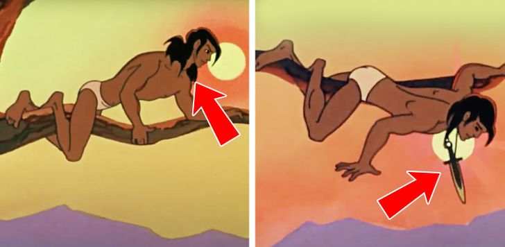 2. В «Маугли» нож на шее у главного героя то появляется, то исчезает.