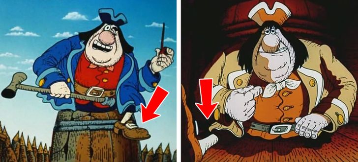 1. В мультфильме «Остров сокровищ» у пирата Джона Сильвера пропадает то левая, то правая нога. Иллюстраторы так и не смогли определиться.