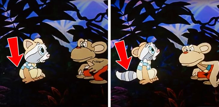 9. В мультфильме у Крошки Енота на мгновение пропадает хвост, а потом снова появляется.