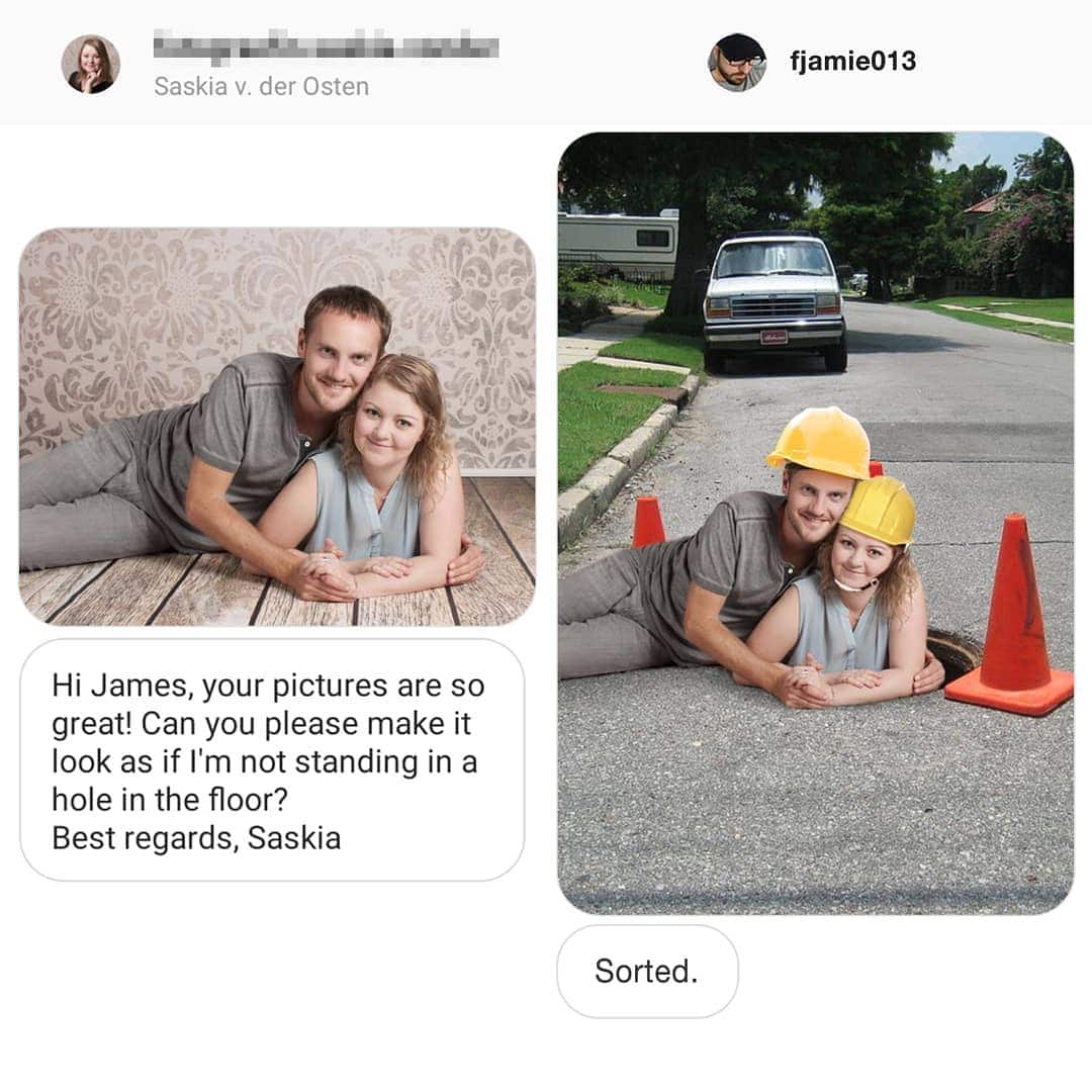 Фотошопер Джеймс Фридман – мастер графического редактора. Он принимает заказы от своих подписчиков и бесплатно обрабатывает их снимки. Но при одном условии – если просьбу человека можно понять двояко, то Джеймс сделает именно так. За это его любят и скидывают фото для обработки несмотря ни на что, пишет twizz.ru.
