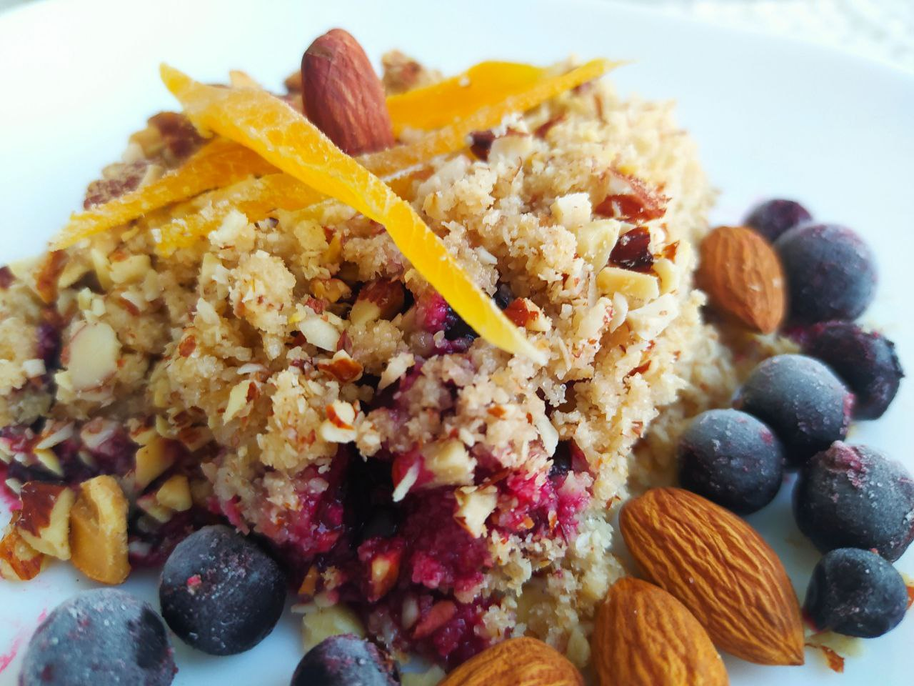 Ароматный крамбл с миндалём и чёрной смородиной. Рецептом делится телеведущая Екатерина Тишкевич