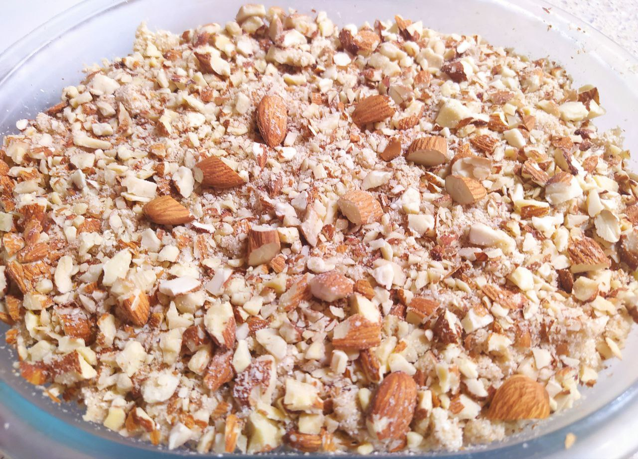 5. Сверху посыпать миндалём, измельчённым в блендере.