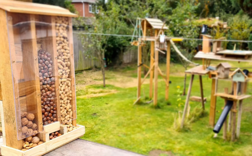 Белки едят орехи, катаются на качелях и купаются в бассейне! Посмотрите, что построил для них мужчина!