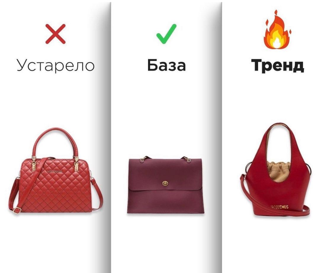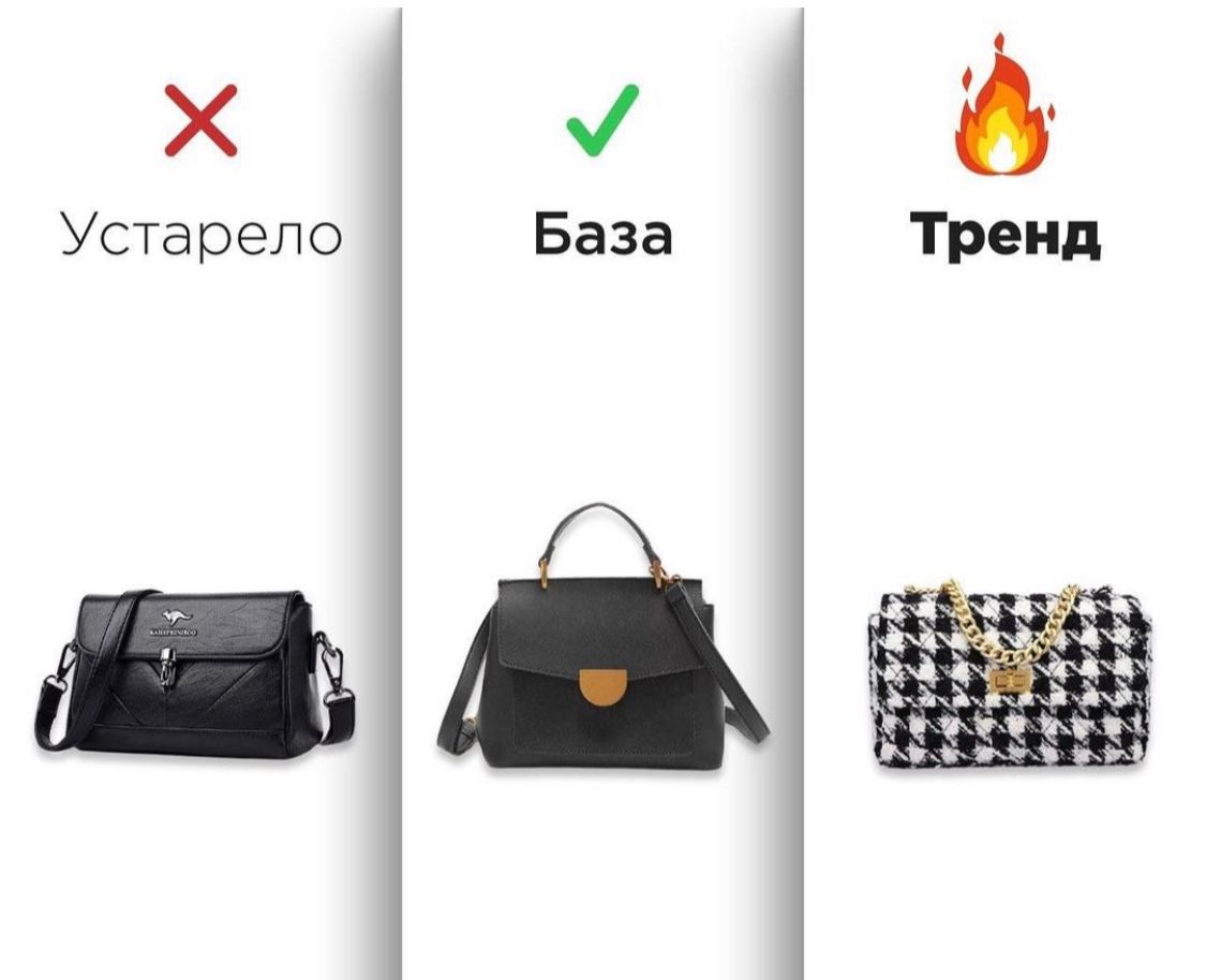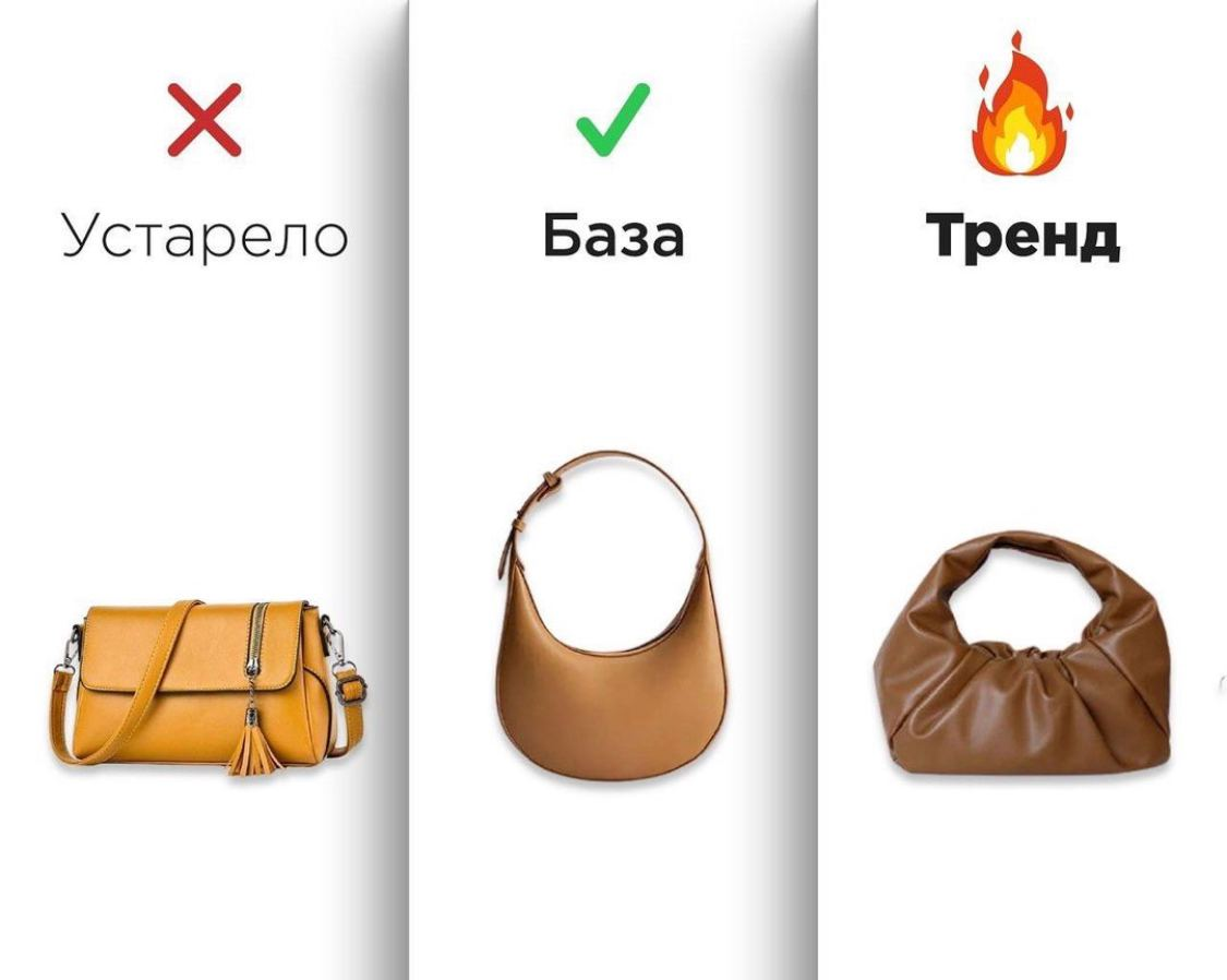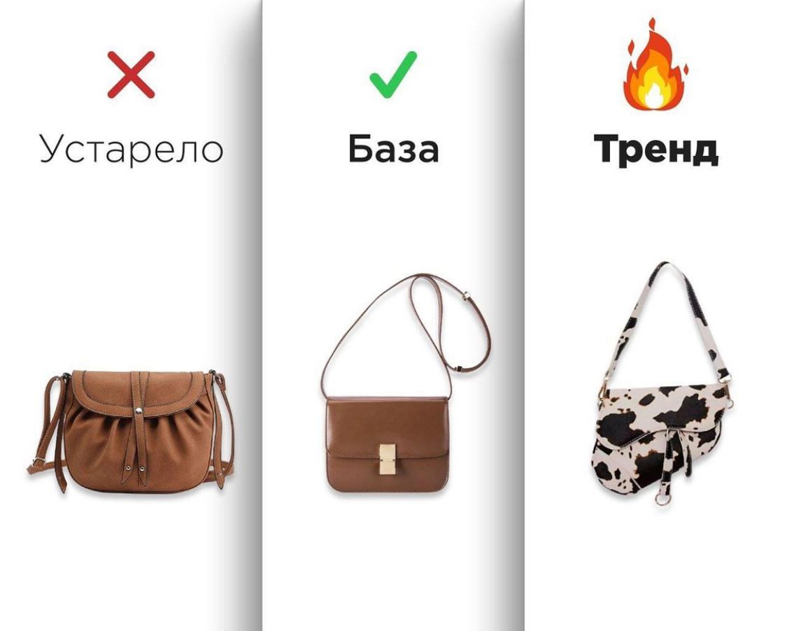 Сумка, как и обувь, выдаёт неактуальный лук с первого взгляда. Прежде чем скупать остромодную одежду, лучше всё же приобрести современную сумку! Боитесь сделать неправильный выбор? Маленький совет: тренируйте «насмотренность» актуальных, модных сумок.