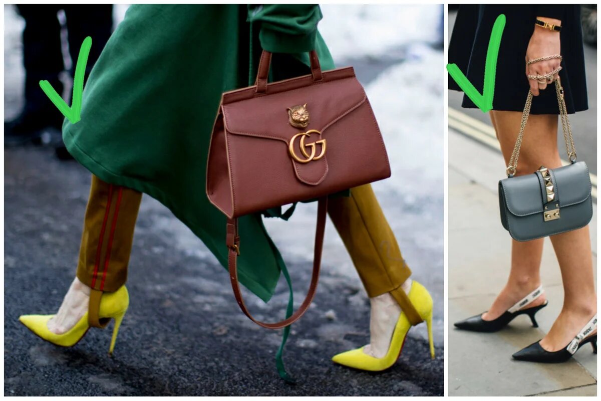1. Откажитесь от сочетания сумки и туфель одного цвета. Данное модное решение было актуальным много лет назад. Однако сейчас такое считается просто неактуальным.