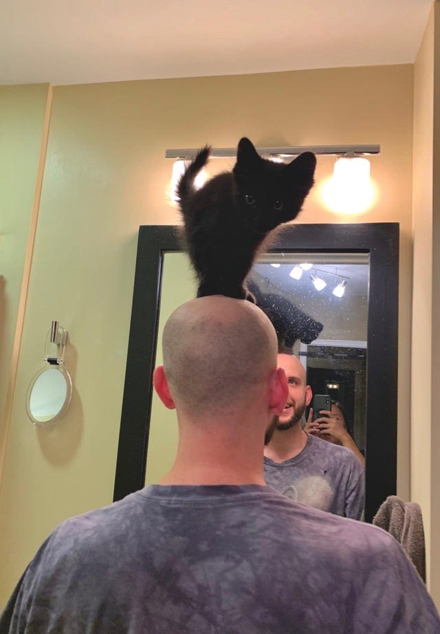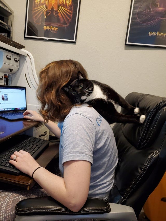 7. А этот кот решил поспособствовать осанке своей хозяйки.