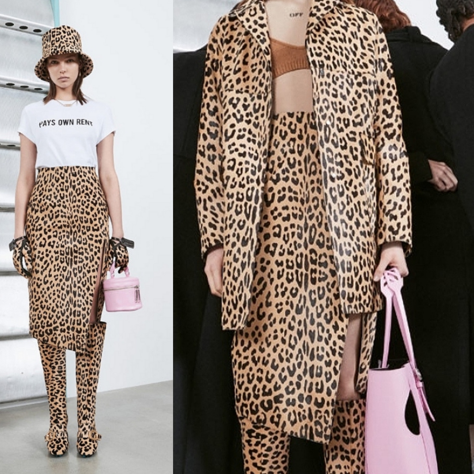 Леопардовый принт обыгрывается в лаконичных формах такой повседневной одежды, как пальто, джинсовые костюмы, платья (Miu Miu, Rochas, Kwaidan Edition).