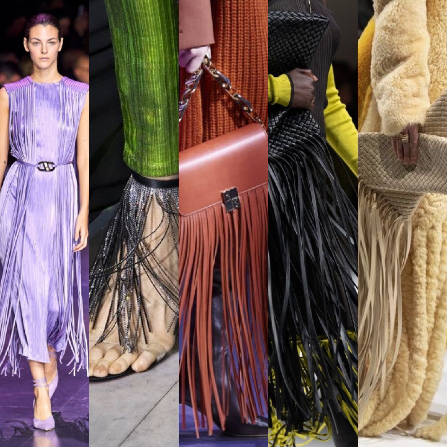 Бахрома. Чем длиннее, тем лучше. Дизайнеры Prada, Bottega Veneta, Jil Sander используют ее как декор на платьях, костюмах, обуви, аксессуарах.