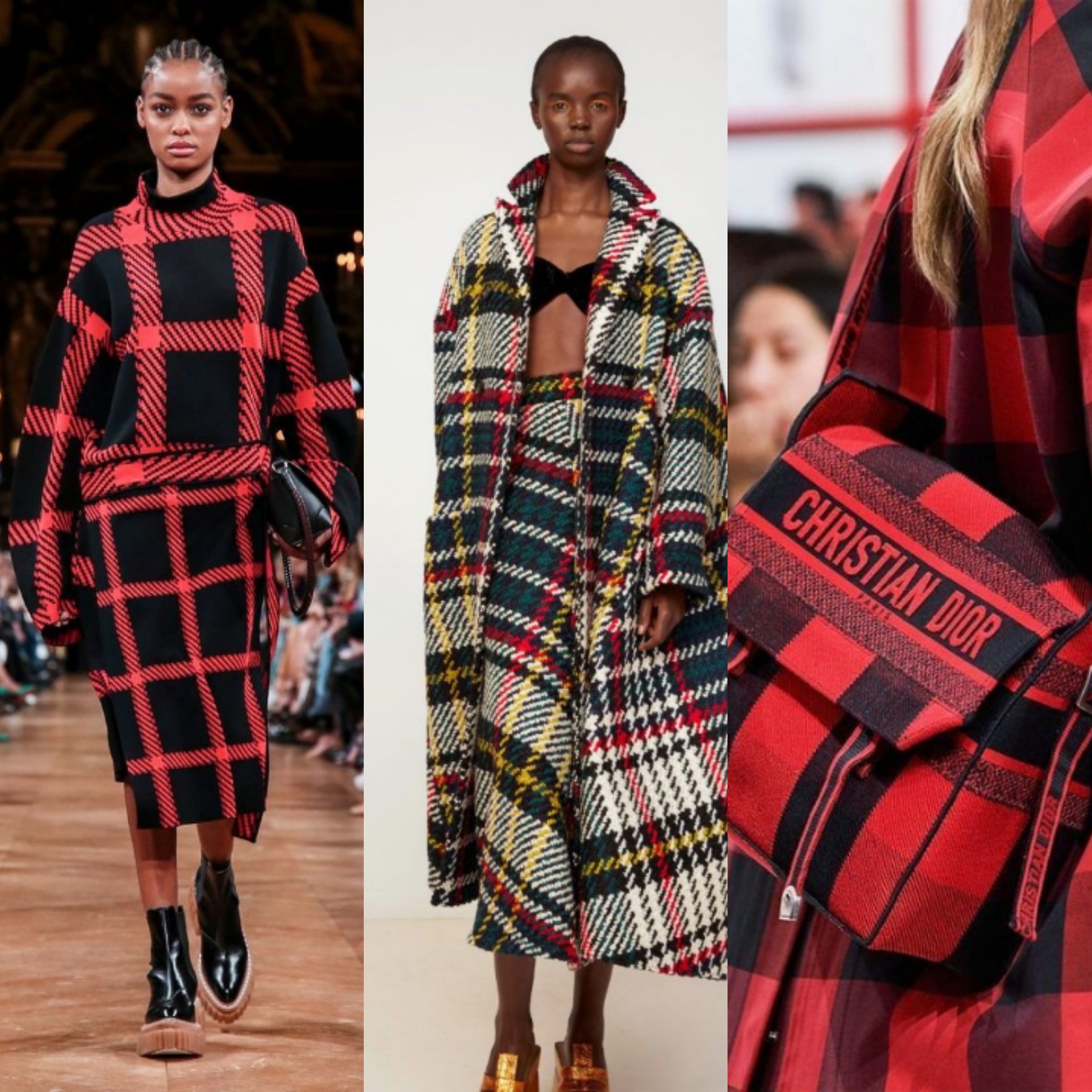 Крупная клетка ярких оттенков или градиентная на костюмах, платьях, жакетах, как у Stella McCartney, Christian Dior.