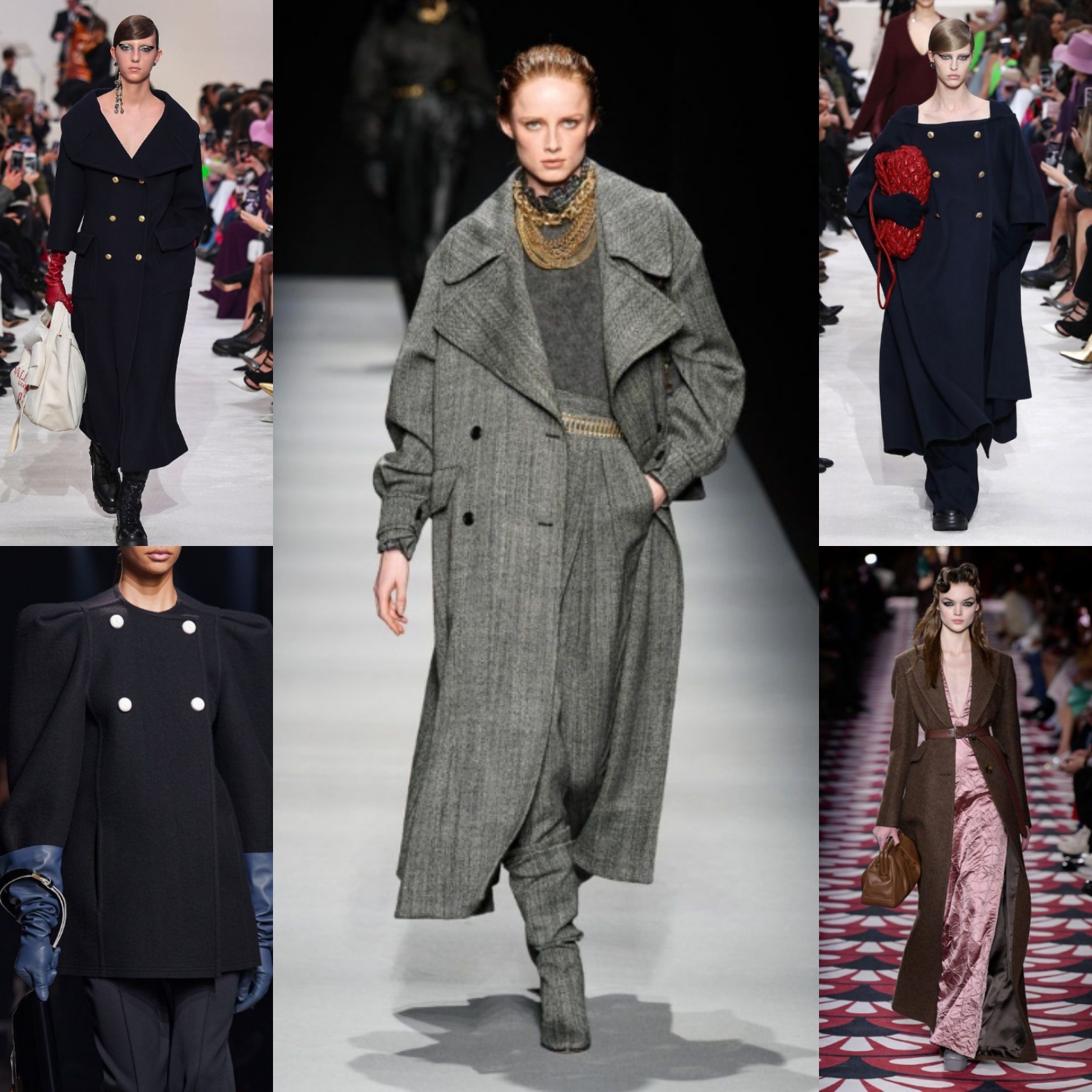 Пальто. Незаменимые как минимум несколько месяцев в году, в этом сезоне будут актуальны двубортные черного цвета в стиле ретро с золотыми пуговицами (Loewe, Givenchy) или серые мужского кроя, в которых можно подчеркнуть талию с помощью ремня (Alberta Ferretti, Prada, Sportmax).