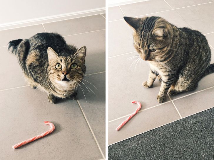 1. Новый год и Рождество уже давно прошли, а этот кот все продолжает приносить своей хозяйке конфеты.