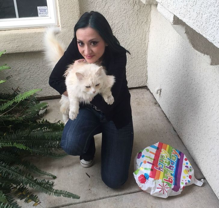 5. Пушистик решил поздравить свою хозяйку с днем рождения. Не важно, что с месяцем немного не угадал, зато приятно.