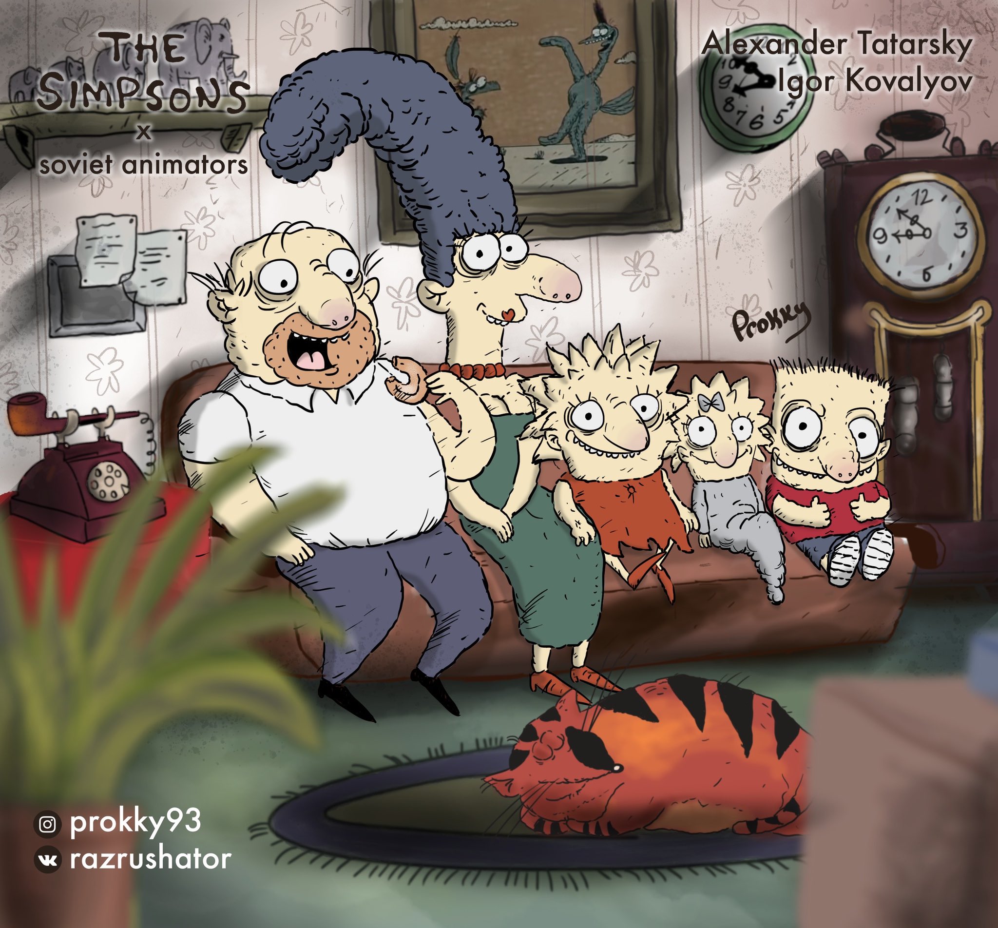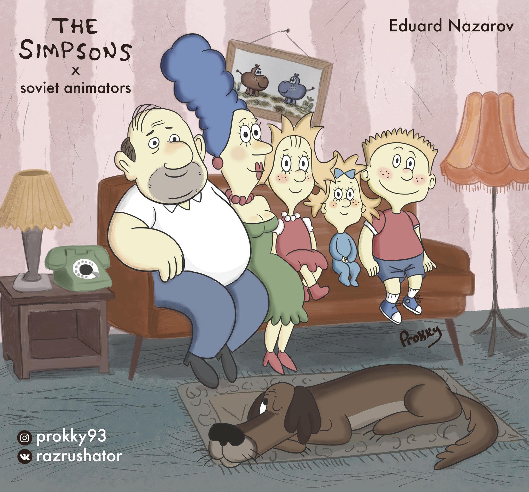 Художник студии «Союзмультфильм» Прокопий Уляшов ко дню рождения сериала «Симпсоны» нарисовал героев проекта в стиле советских аниматоров – авторов «Приключений капитана Врунгеля», «Жил-был пес» и «Следствие ведут Колобки». На это обращает внимание издание TJournal.
