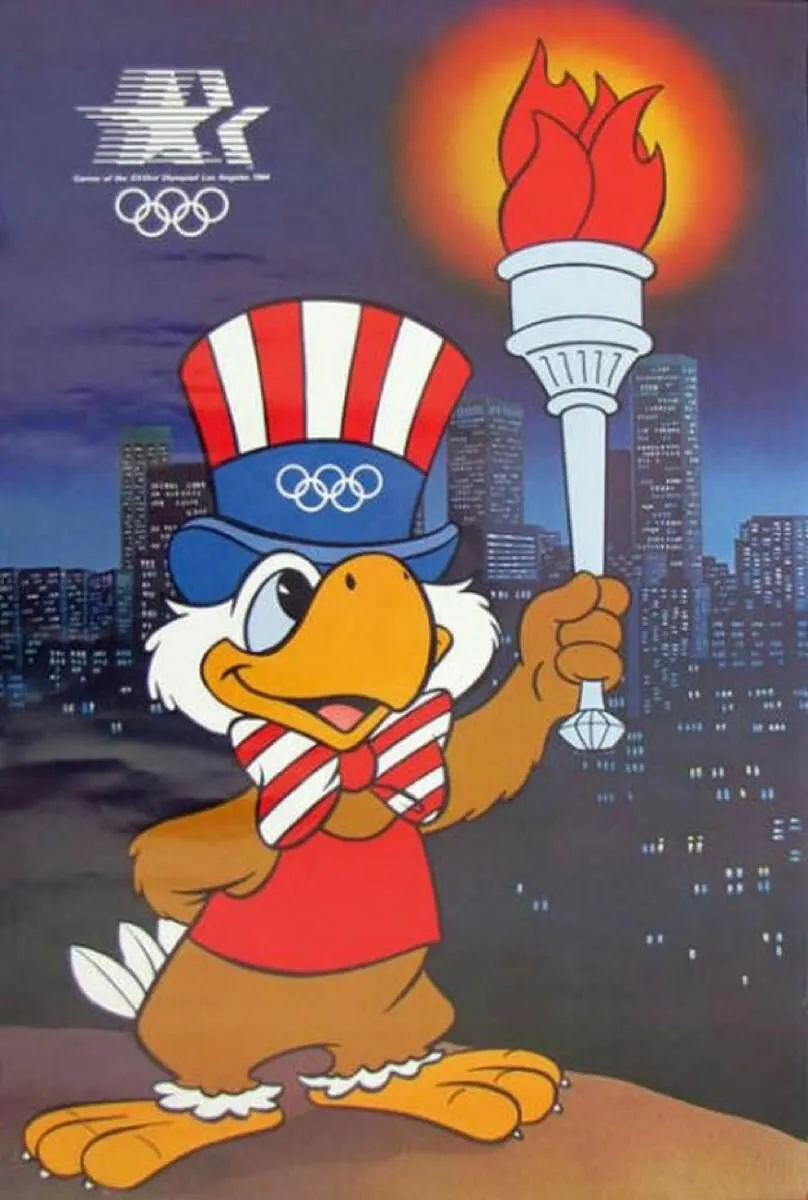 1984 год – Лос-Анджелес. Радовать зрителей и спортсменов на Олимпиаде в США повезло Сэму. Орлёнка в цилиндре, окрашенном в цвета американского флага, создали в студии Walt Disney.