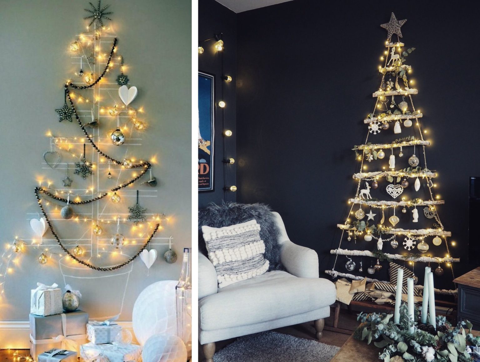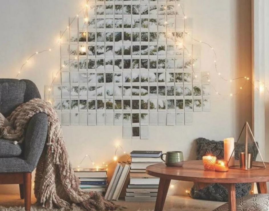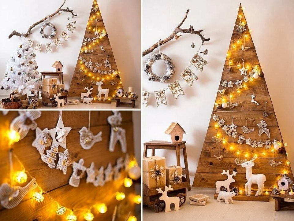 Как украсить небольшую квартиру? Даже если места мало, этим тоже можно воспользоваться и сделать уютное новогоднее гнездышко. Если ель ставить совсем негде, но соблюсти новогоднюю традицию хочется, можно поместить дерево... на одной из стен.