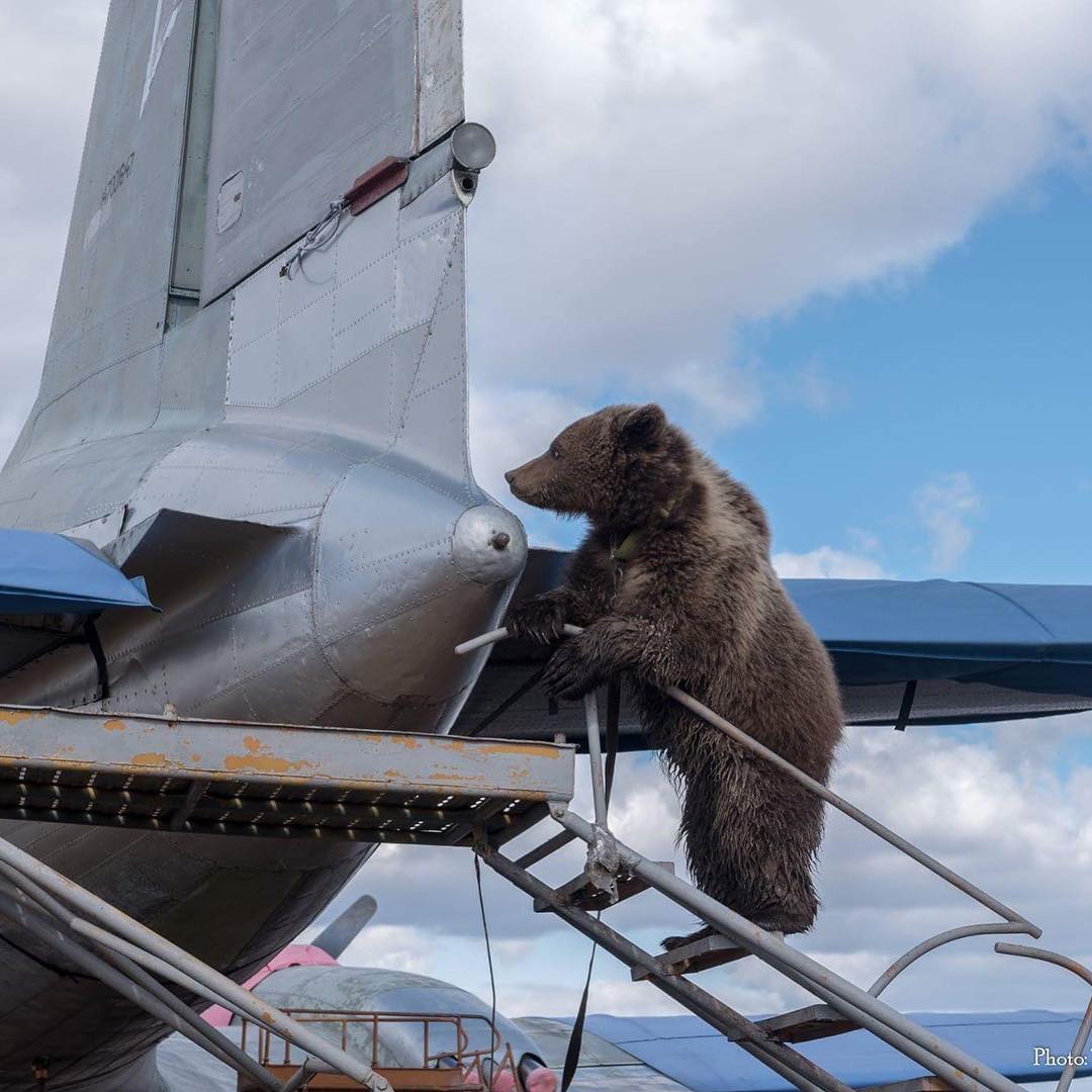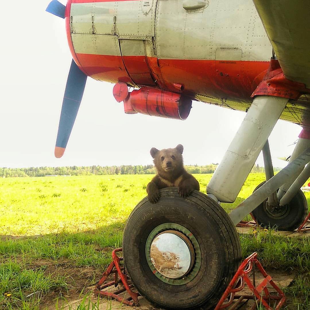 Медвежонка приютили пилоты, которые занимаются восстановлением раритетных самолетов на частном аэродроме.